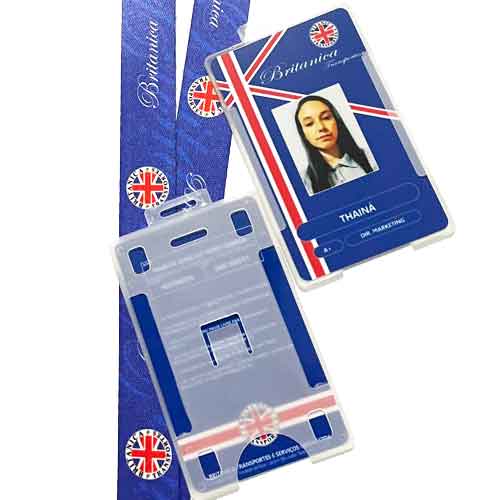 30 Crachás Em Pvc + Cordões Personalizados 20mm + Porta Crachá
