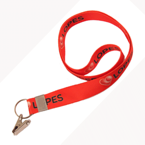 Cordão para crachá com impressão digital 15mm – Acabamento Argola e Clips jacaré.