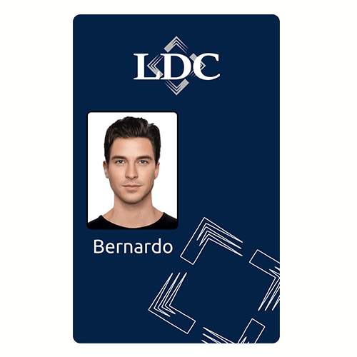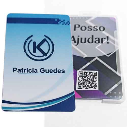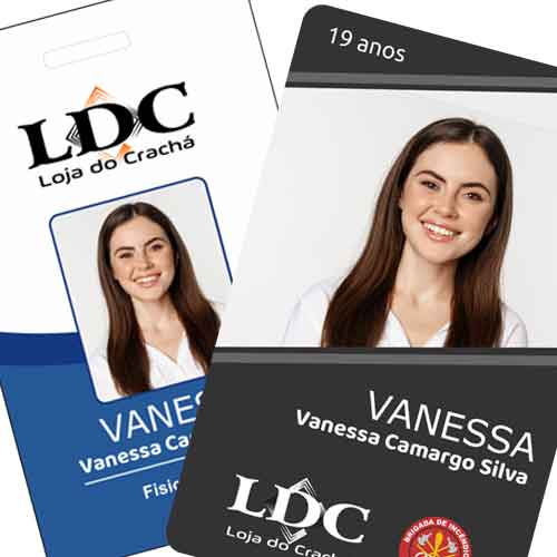 Crachá em PVC Laminado tamanho padrão CR80 54X86mm. Crachá com frente e verso colorido, ou apenas 1 cor no verso. Fabricamos crachás com código de barras e QRCODE. Cor 4X4. Opcional furo ovoide.